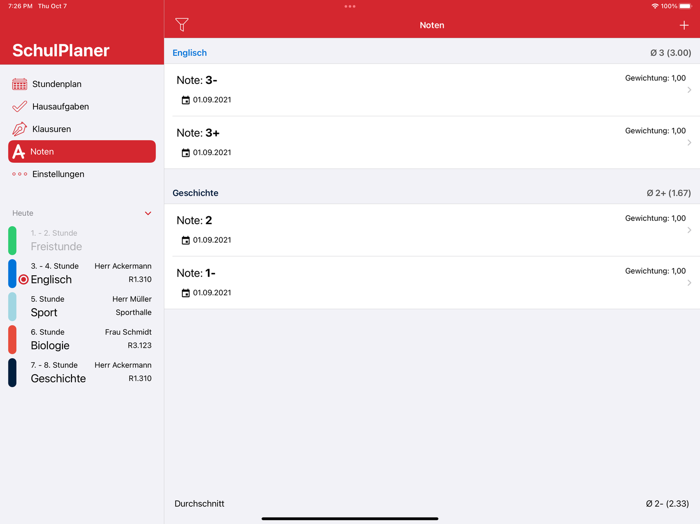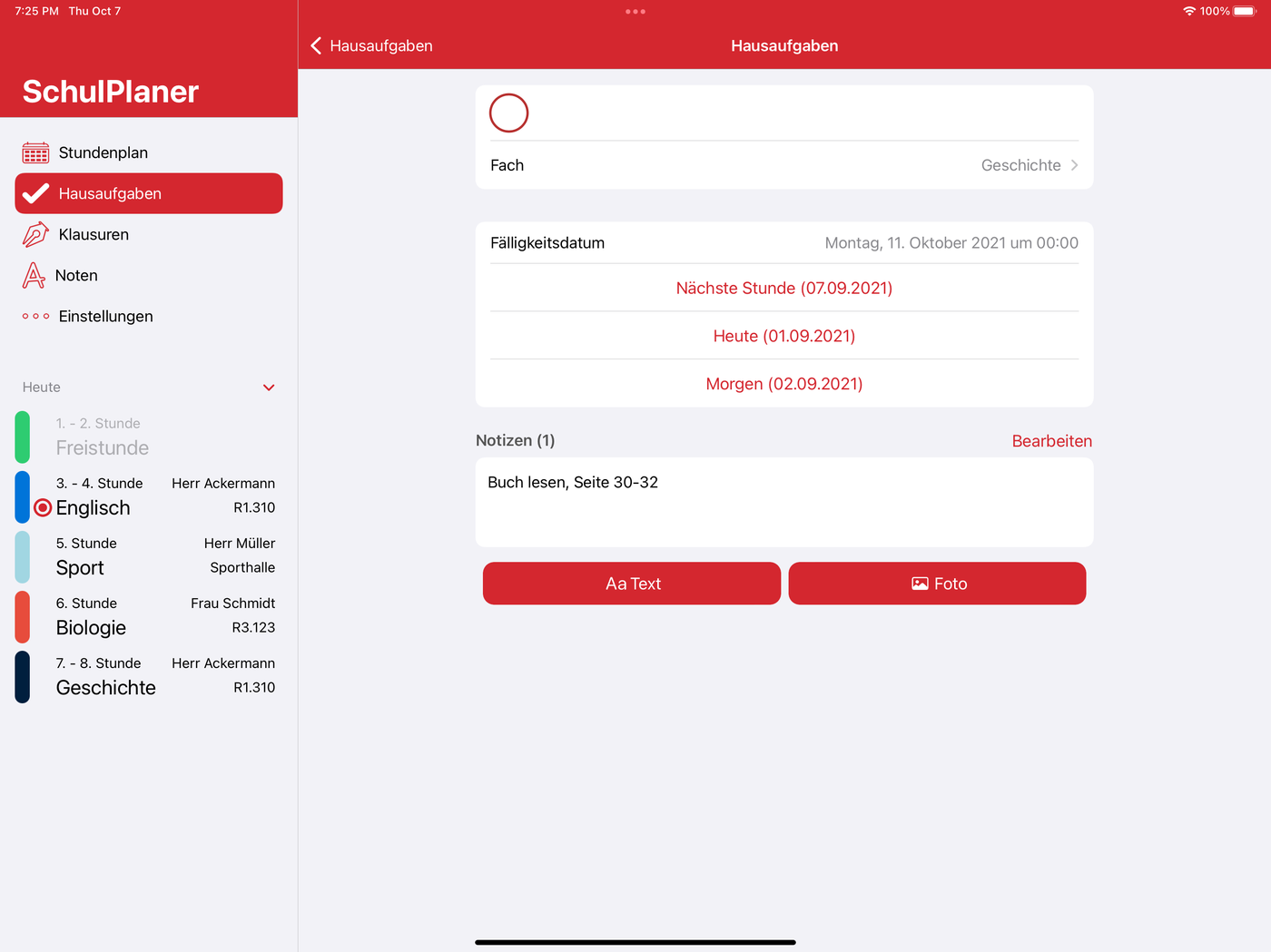 Stundenplan, Hausaufgaben & Co