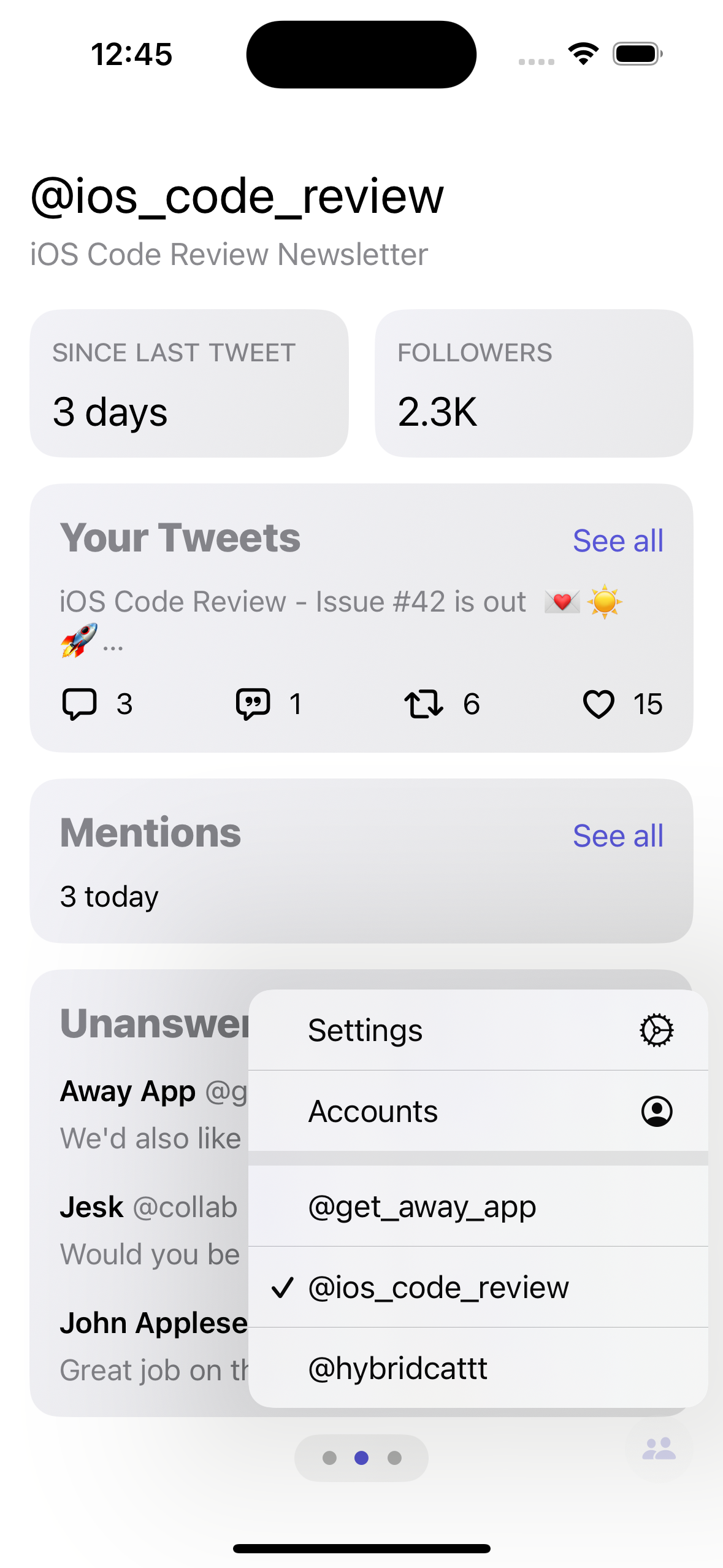 Away: Dashboard for Twitter