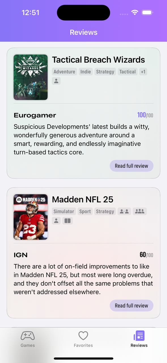 GamingBuddy is a companion for people who enjoy video games. The app can be used to keep up with new releases, read recent reviews, follow gaming showcases (like Gamescom), add countdown widgets to Home Screen, and much more.