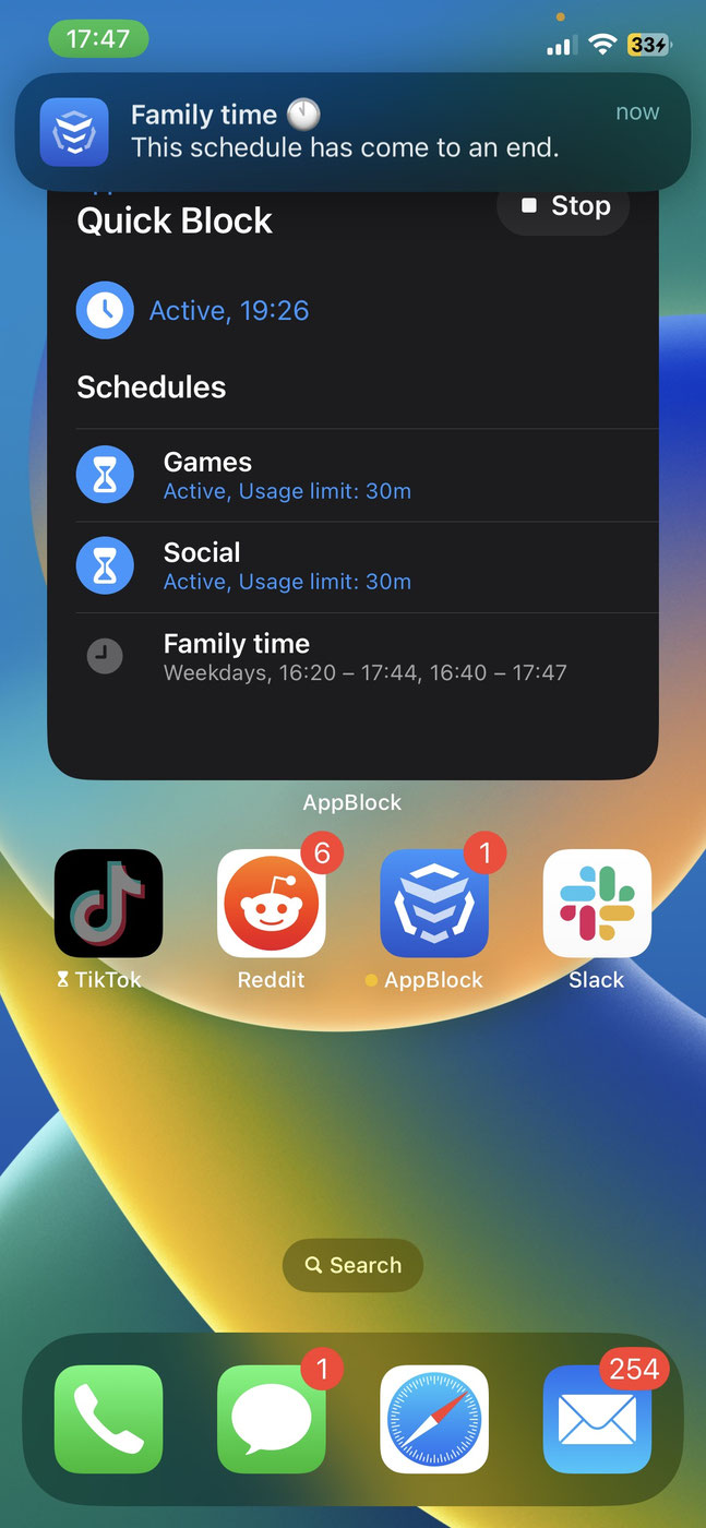 With our latest update, you can now have a widget of AppBlock on your iPhone home screen, which allows you to control AppBlock more conveniently than ever before. Whether you want to quickly toggle Quick Block, check your schedules at a glance, or see how much time you have left on a blocked app, our newly added widgets have got you covered. And best of all, they're super easy to set up and use!