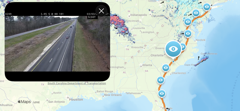 We've added live traffic camera feeds, sourced directly from DOT and highway authority networks across the US, right onto your route map.