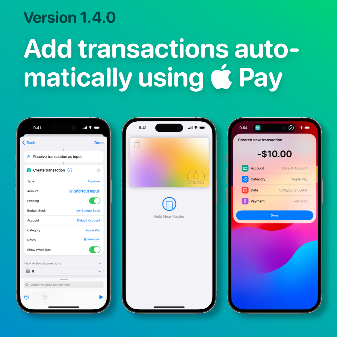 - Added a new shortcut which allows to create a new transaction without opening the app